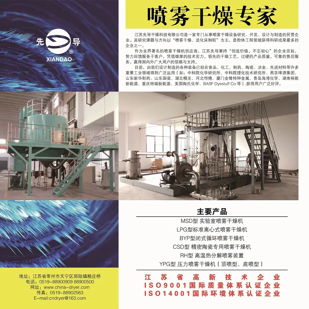 我公司是一家專門從事干燥設(shè)備研究、開發(fā)、設(shè)計(jì)與制造的民營(yíng)企業(yè)。研究課題與方向以“噴霧干燥、一步制?!睘橹?,是粉體技術(shù)領(lǐng)域獲得科研成果最多的企業(yè)之一。目前,由我們?cè)O(shè)計(jì)制造的各種裝備已經(jīng)在食品、化工、制藥、陶瓷、冶金、硬質(zhì)合金、飼料等許多重要工業(yè)領(lǐng)域得到廣泛運(yùn)用。“先導(dǎo)”噴霧干燥實(shí)驗(yàn)機(jī)型屬于國(guó)內(nèi)首創(chuàng)產(chǎn)品,自80年代投產(chǎn)以來,已經(jīng)歷了其獨(dú)特的成功發(fā)展史。目前有近200臺(tái)設(shè)備提供給國(guó)內(nèi)外的大學(xué)、研究中心、科研單位以及粉末生產(chǎn)機(jī)構(gòu)中使用。